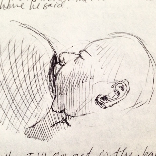 In any case, you can look forward to some new pics of this very active little beast in 2 weeks. Beast of the large forehead. Beast of the monkey toes. And the killer kick. I described it to one of my coworkers as, “it’s like the part in Jurassic Park where the velociraptors start testing the fence for weaknesses.”