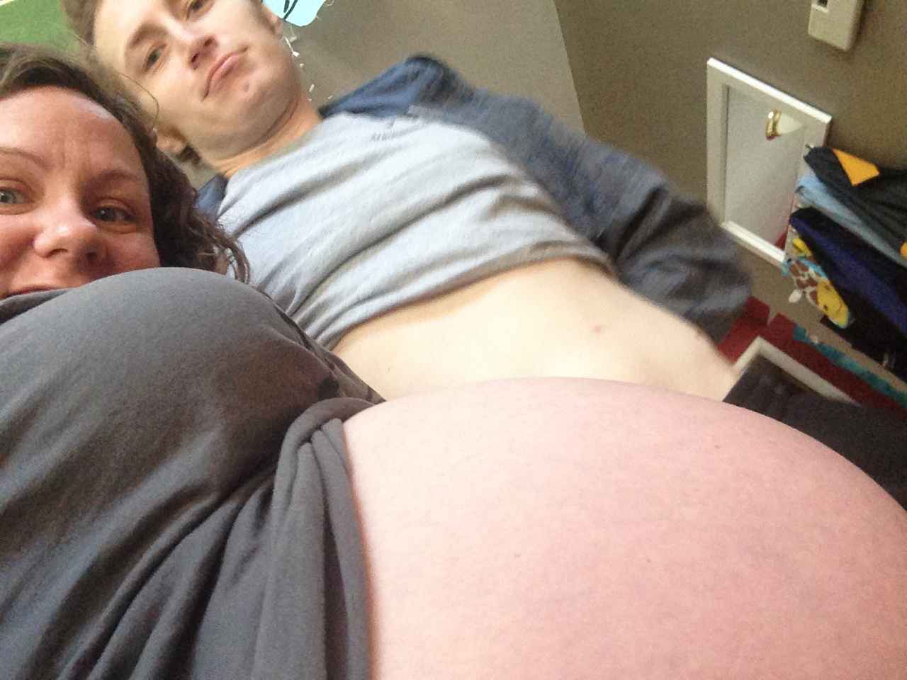 As a matter of end of third trimester routine, we now go to the doctor every week. They’re planning on another ultrasound next week to check that the baby is still growing well. I’m measuring (height of fundus/uterus) at 34 cm. Number of cm = approximate # weeks growth, so that puts me “2 weeks small,” supposedly. It could mean baby isn’t growing well, but it most likely means that I’m just small. During my ultrasound last week, my placenta and amniotic fluids looked full and healthy, and the baby continues to move well.