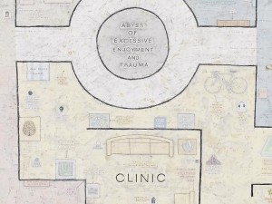 Step 3: At minimum, create a larger map, a detail cut-away page, and some kind of key for your map. You can be creative in how these forms are interpreted. Feel free to use drawing, collage, etc.–anything! Use Google Maps and other resources if you wish to supplement your ideas and memories of place.