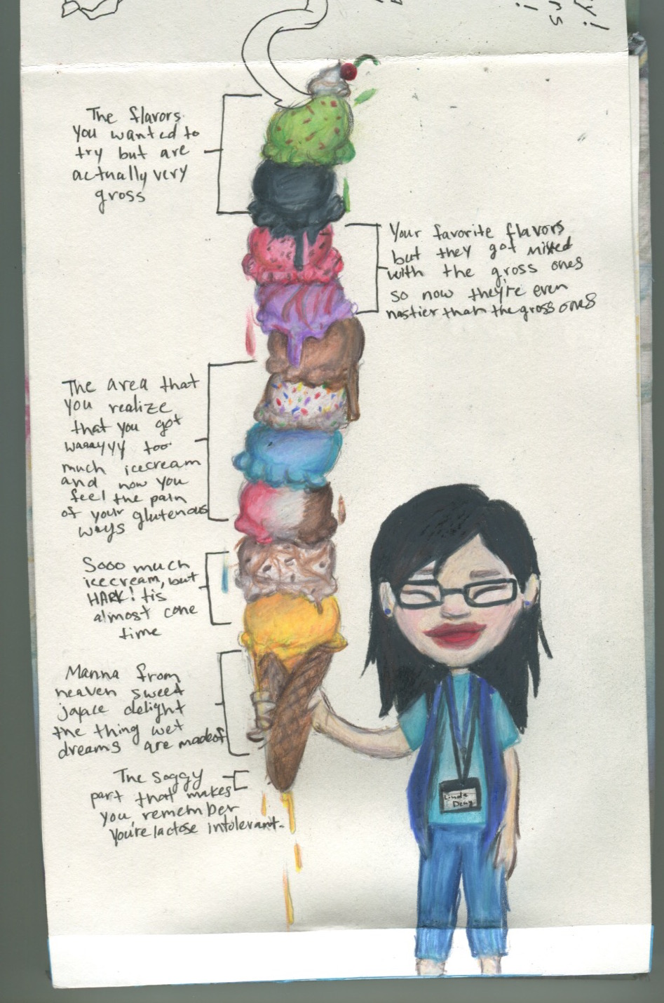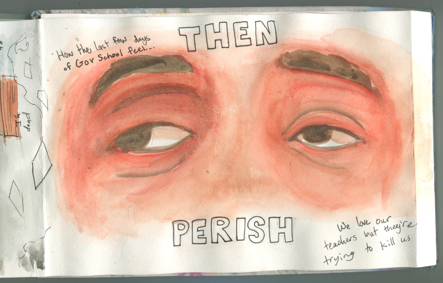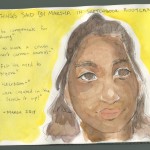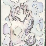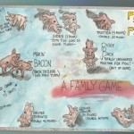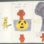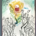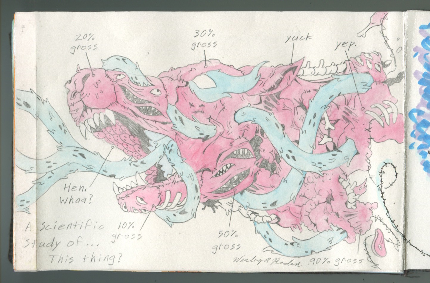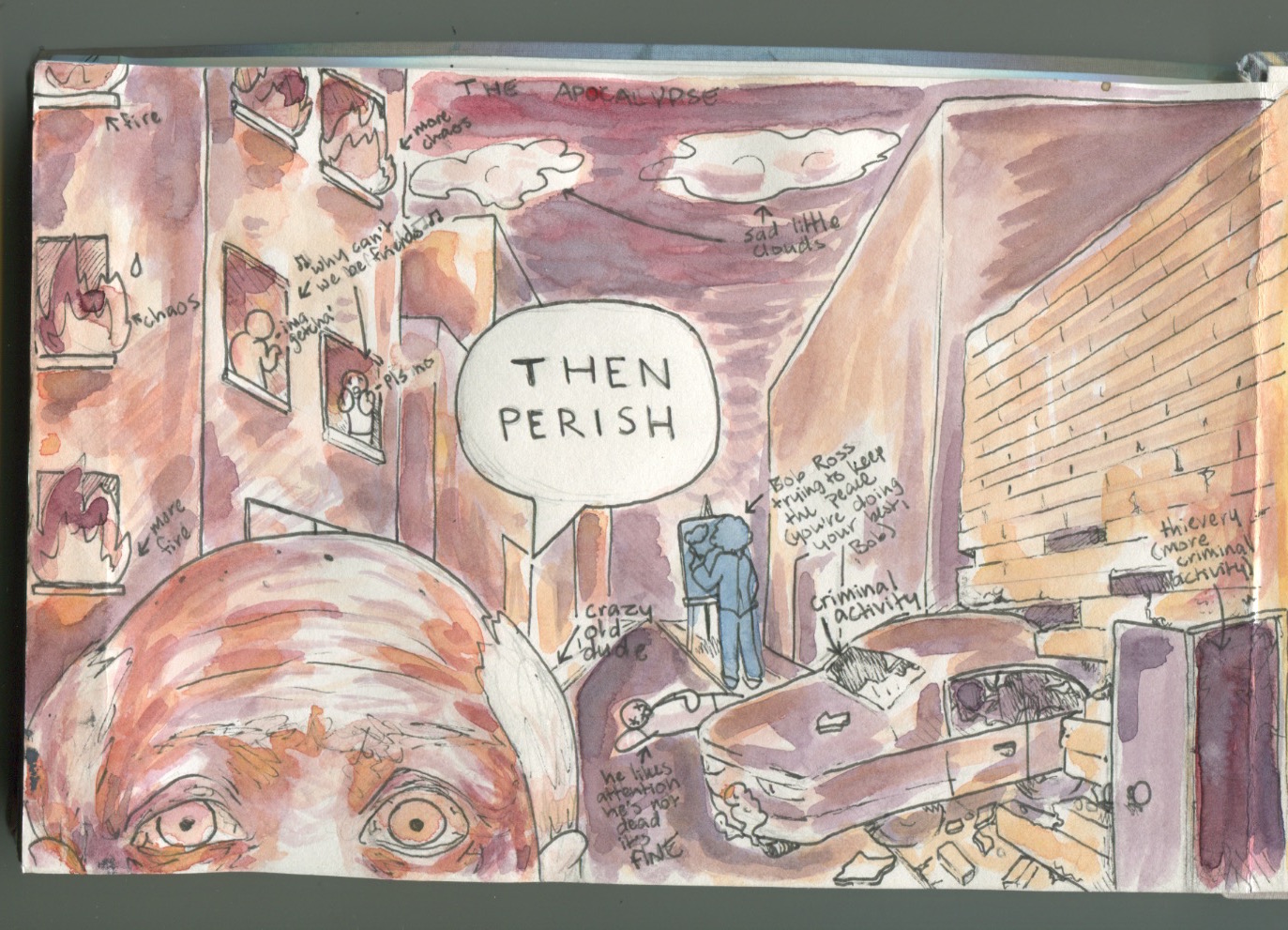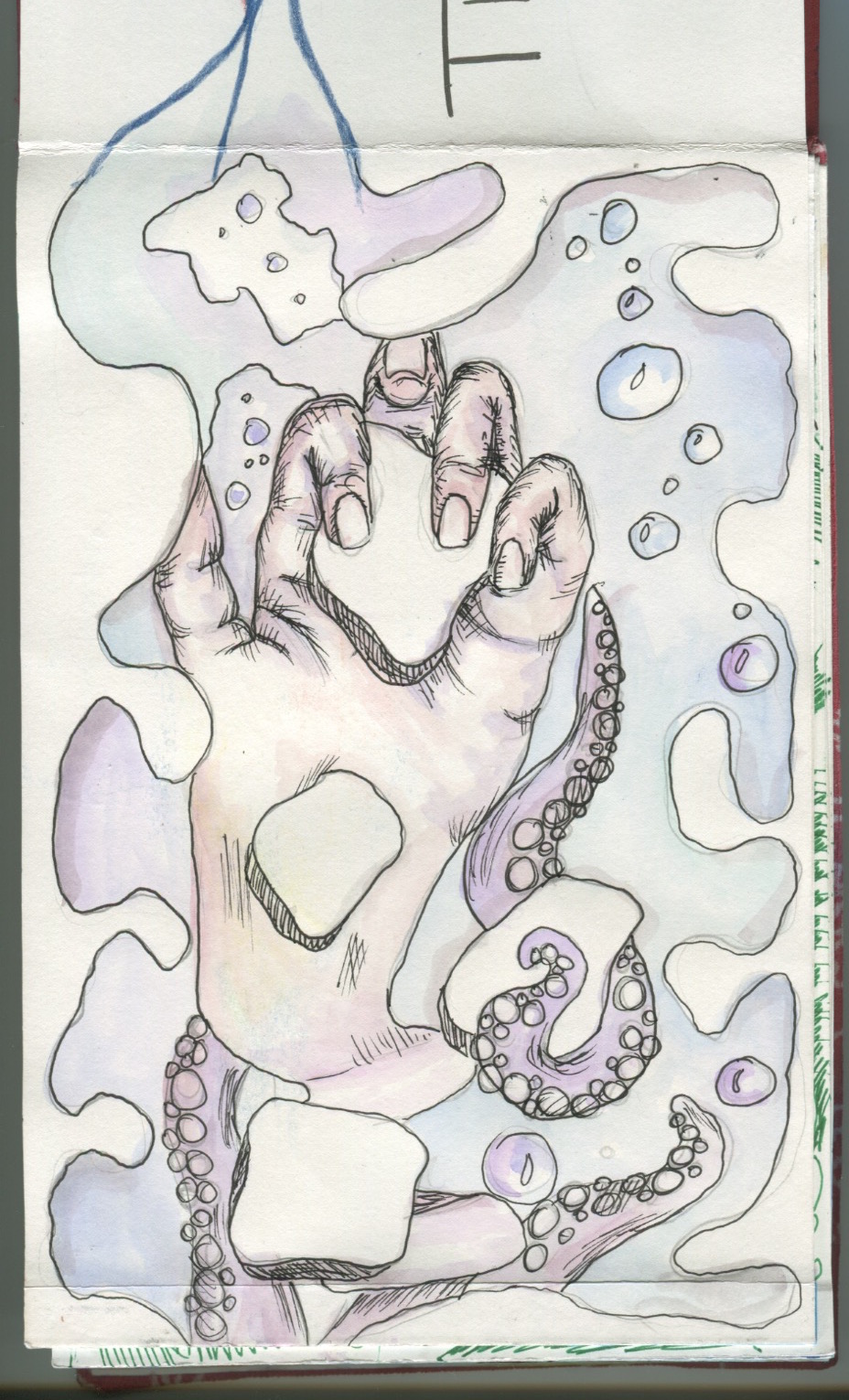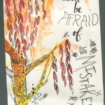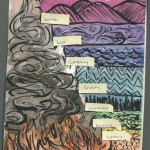 Below are the pages from three collaborative accordion books students worked on at this year’s Gov. School sketchbook class. Each class had a small book to work in, and one larger book that students from both classes helped create. Blake built the books, encasing the covers in repurposed fabric from the local Goodwill. Then students were asked to contribute an illustration on each page that referenced mapping. Each artist was meant to continue a bit of drawing/information onto the next page for the next artist to build onto, á la an Exquisite Corpse. As the end of the workshop loomed, folks had to work fast and then hand them off to unsuspecting classmates. Blake and Hannah contributed as well. See if you can find ours!