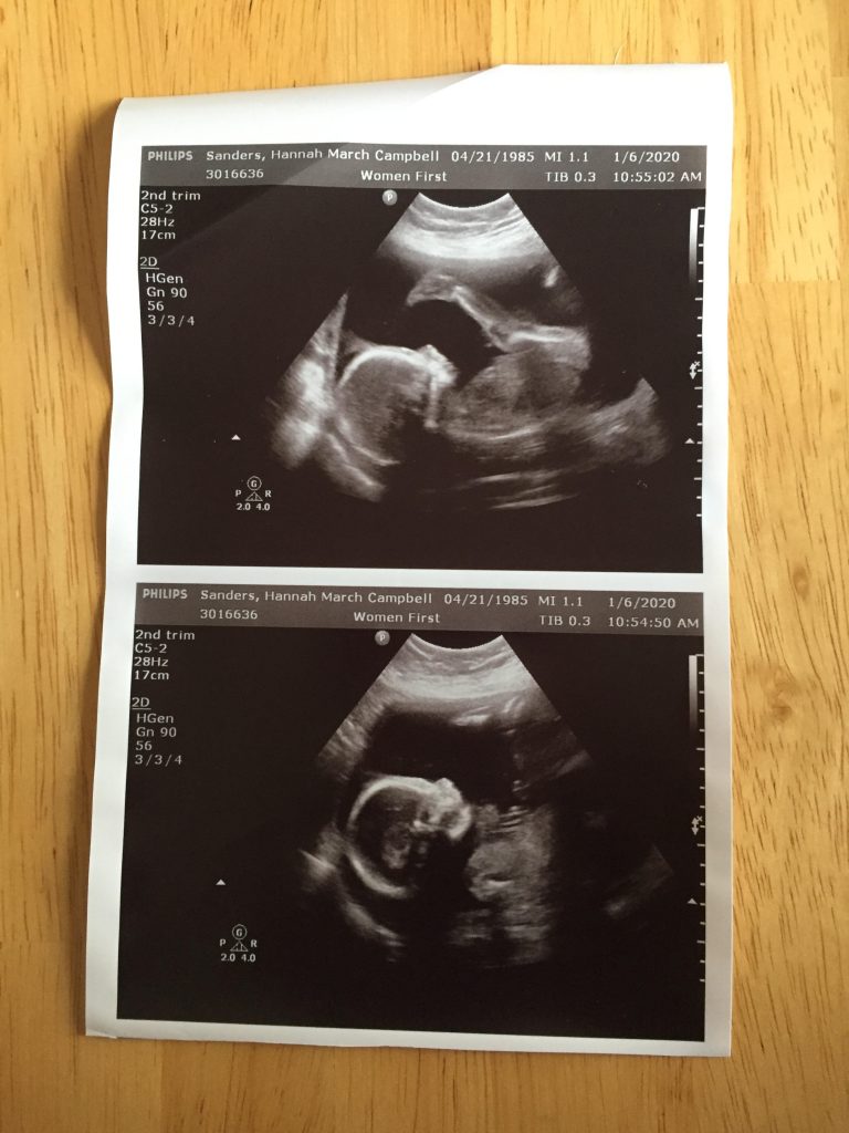 Part of why we didn’t announce this pregnancy until 4, almost 5, months along is that I couldn’t get in to the doctor for quite a while. About 2 days after likely conception occurred, I felt pregnant. Oddly, the month before I also felt pregnant–so I don’t know if that was some particularly strong hormone shifts with my monthly cycle or if something else was at play–but I soon figured out I wasn’t pregnant that month thanks to my very regular cycle–a particularly heavy one. For those of you who don’t know this, pregnancy weeks/months/how far along one is is counted from the first day of the previous period (the beginning of the cycle in which one conceived, usually weeks before one conceives, therefore). My last cycle began August 11, and I took a pregnancy test August 14th (1-2 days after my cycle would have normally begun), and got that positive + sign. Due to a very busy OBGYN office with a lot of change-over in staff and receptionists taking vacations and the fact that I’m now considered a “new patient” because it’d been almost 5 years since I’d given birth (they had to ask my Dr. if she would take me on as a patient again–thankfully, she said “yes”!), I wasn’t able to get in for my first appointment and coinciding ultrasound with this pregnancy until I was 11 weeks + 1 day along–late October. I had a great appointment, confirming my prediction of due date to the very day I had calculated–May 17th, 2020–and the Dr. said the baby was growing exactly on schedule for its time in the womb so far. I had a second appointment in early December, and my third appointment of this pregnancy along with the important “Anatomy Ultrasound” was yesterday.